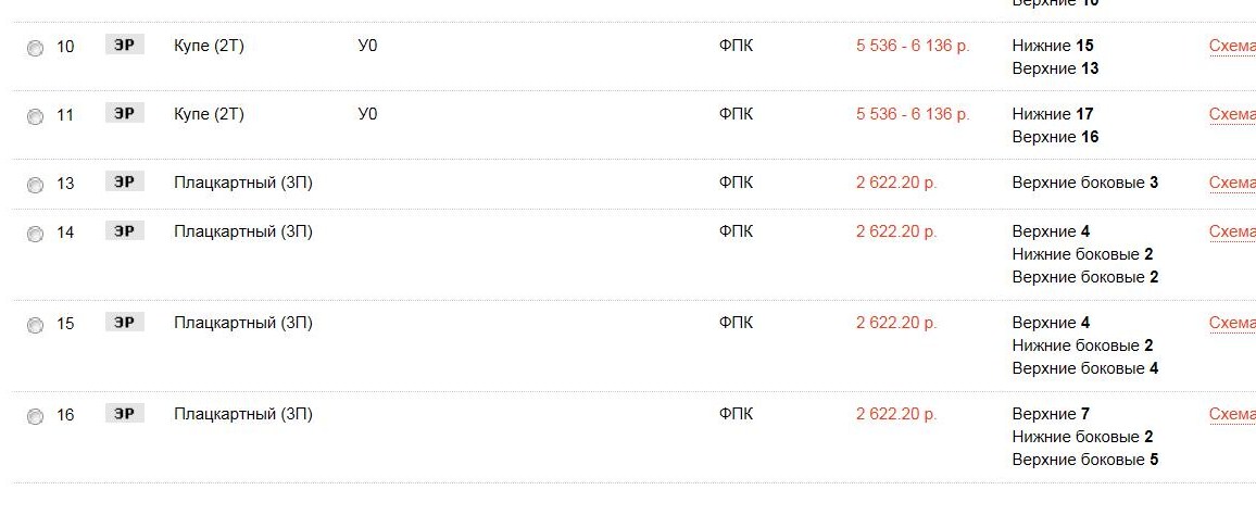 В 8:00 102 и 104 честно открылись целиком. Система глючила, периодически выдавая ошибку обращения к базе АСУ "Экспресс". Тем не менее ухватить нужно была возможность. При открытии в 102-м купе ТКС в среднем было на 1500 дешевле купе ФПК (5300 против 6700 за верх, низы - дороже).