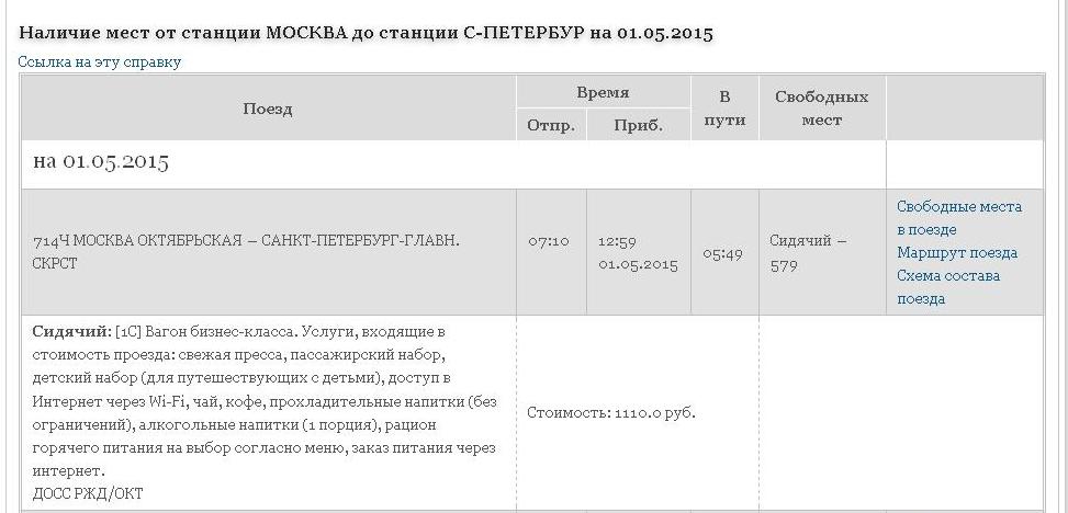 Сохраним для истории наличие мест на утро 01 мая 2015 года менее, чем за двое суток до отправления: