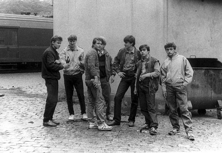 Группа советских студентов и школьниц на свидницком вокзале (1989-й год).