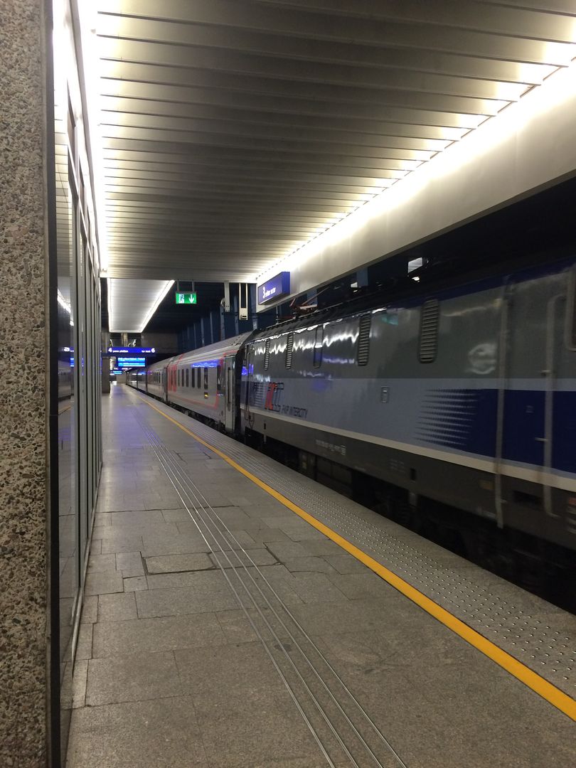 Заполняемость нашего вагона - от Москвы чуть меньше половины, далее посадка только в Минске (внушительная), Барановичах и Бресте. На время ПТК в Бресте туалеты были закрыты, их кратковременно открыли на участке Брест - Тересполь, затем снова закрыли до окончания польского ПТК. График очень удачный, и оба ПТК приходятся на вечер, соответственно ночью можно спать спокойно. ИМХО, в Польше и Чехии (я уж молчу про Австрию) путь более плавный и тихий, и он более способствует хорошему сну - я впервые в жизни проспал в поезде всю ночь - в общей сложности не менее 8 часов.