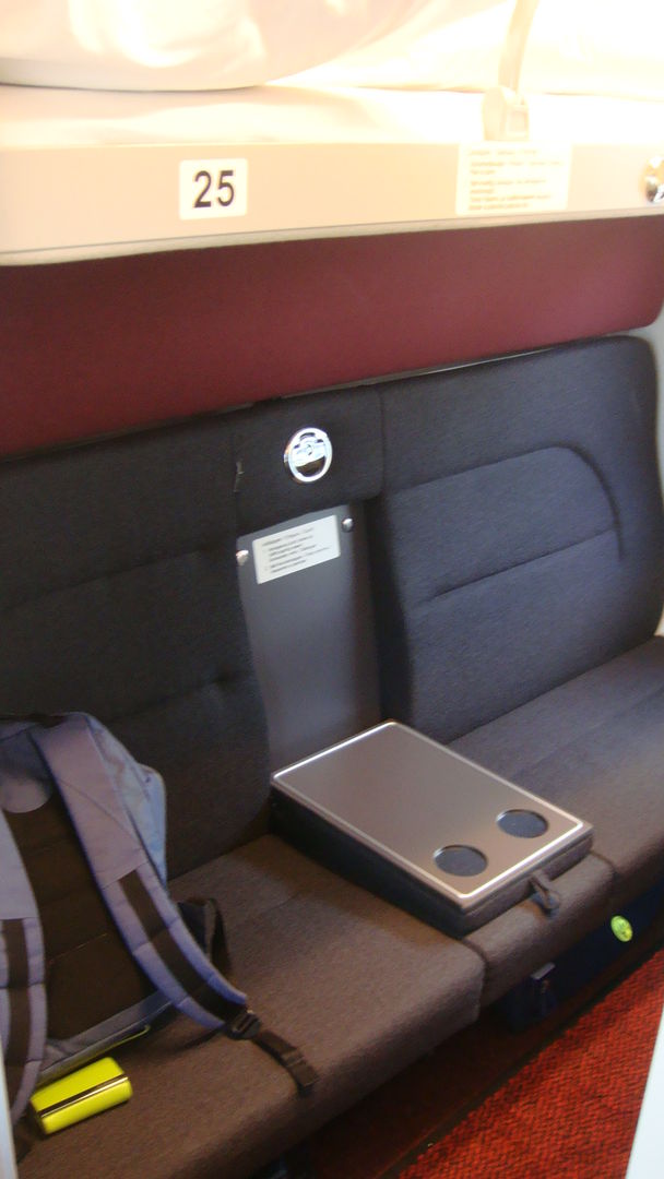 Купе. Где-то (может, даже на нашем форуме) об интерьере отзывались, как о больничном - мол, всё скучно, бело-серо и не интересно. На мой взгляд, это не так. Интерьер вполне современный, особенно приятны панели под дерево над полками.