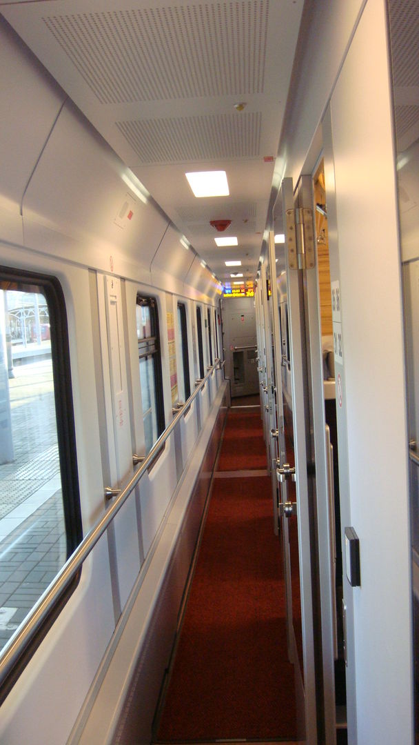 Коридор в этих вагонах более узкий, чем в аналогичных купейных вагонах нашего габарита. Это особенно чувствуется, когда, пройдя весь состав, попадаешь в гёрлицевский вагон-буфет, находящийся в конце состава.