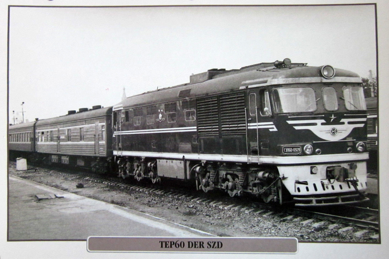 Тепловоз ТЭП60-0928 с пассажирским поездом и вагоном-электростанцией на станции Ленинград-Варшавский, город Ленинград (1980-е годы):