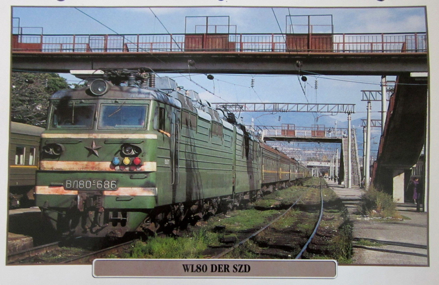 Электровоз ВЛ80С-686 с пассажирским поездом на станции Новороссийск, Краснодарский край (фото сделано в конце 1980-х - начале 1990-х годов):