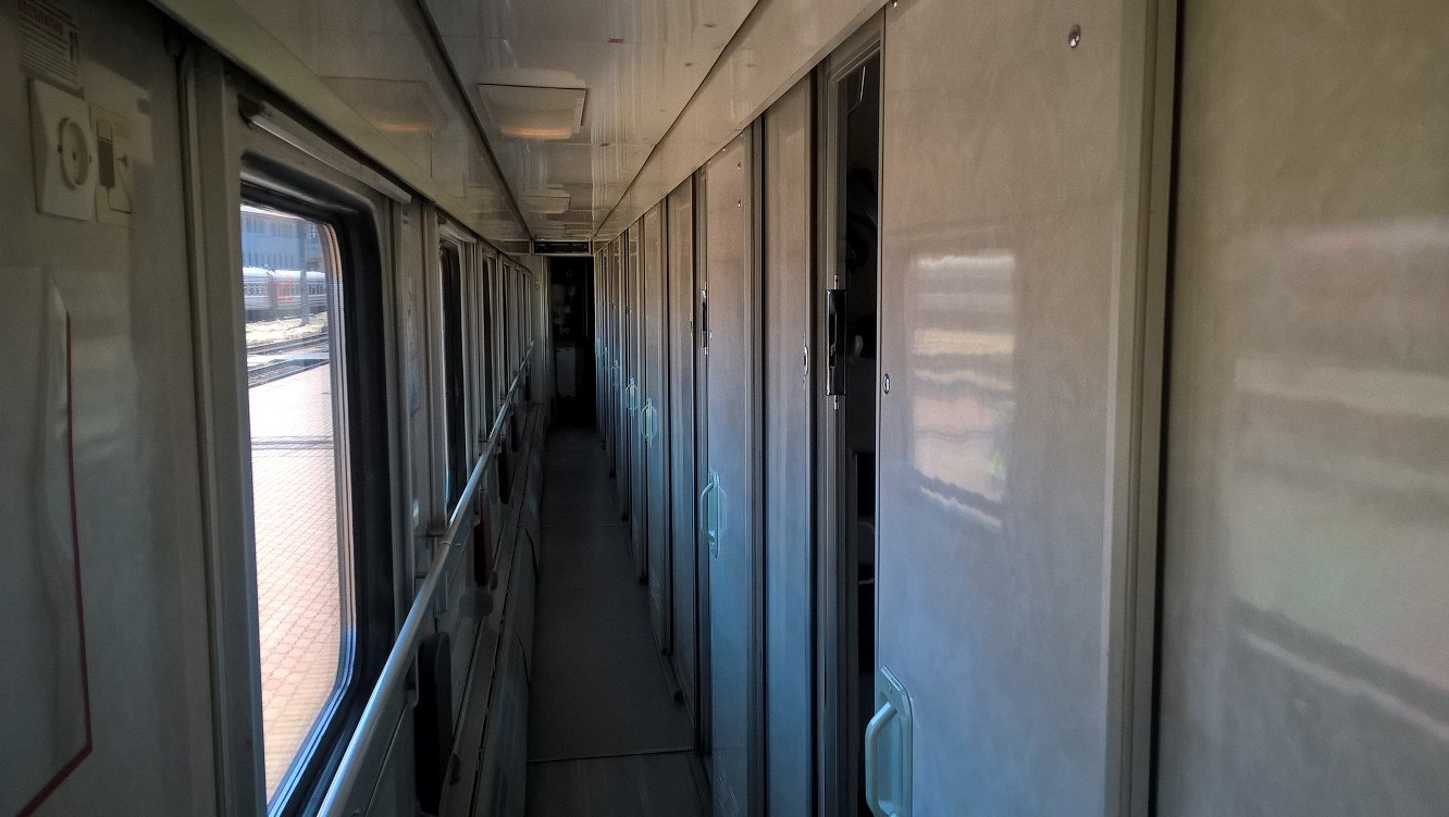 Вагон очень хорош, хоть и не новый. Ничего не скрипело, не трещало, полки в порядке, туалет не вакуумный (что радует). По всей видимости, это дополнительный вагон на праздничные дни. Ковровых покрытий в коридоре и купе не было, как и не было скатерти на столе. При этом, повторюсь, вагон мне понравился. Чисто и без лишних шумов.