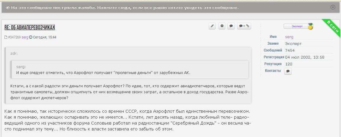 Вот, например, в теме "Болтовня" - Об авиаперевозчиках я разместил сообщение -