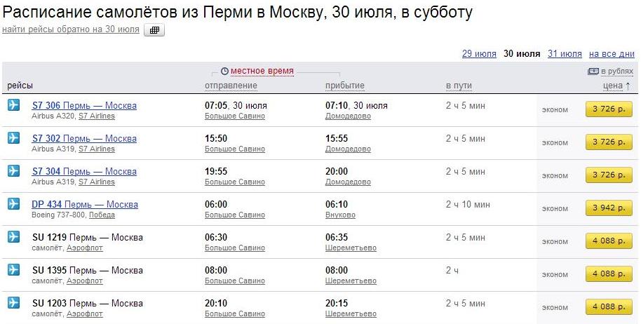 Авиа Пермь-Москва 30.07.2016