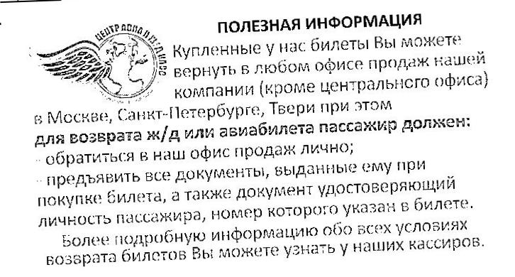 Я обратился в коммерческую кассу только потому, что в ней не было очередей, в отличие от штатных касс Московского вокзала. а с правилами при покупке билета меня никто не знакомил, просто в России принято учить задним числом и делать виноватым человека, который что-то недопонял или вовремя не среагировал. а что касается документов - допускаю, что там всё чисто, так как сама дирекция вокзалов РЖд допускает размещение на вокзальной площади конторки, котораЯ будет печатать билеты по логину и паролю, предоставляемой самой ОАО РЖД, так что тут налицо явное перекачивание денегserg:
