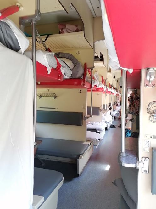 Молодая проводница проверила билеты, пригласила на посадку. Напротив наших боковых мест ехала молодая семья с двумя беспокойными маленькими детьми. Благо что они сразу же практически натянули импровизированную шторку и их отсек хотя бы визуально с глаз скрылся. Но шум от детворы никуда не деть. Хотя родители пытались сделать детям замечание, но это же дети, непоседы.