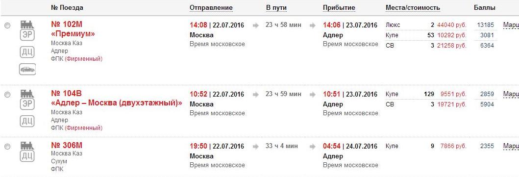 Конечно люди идут на скорые. Давайте смотреть на 84 и 116 в соответствии с данными вашего скриншота (они же исходные, раз сравниваем): маршрут Адлер-Москва, отправление 24.07.2016.nhfvdfq71:И что номер? 83/84 не сильно отличается. Зато номер!nord: Номера поездов посмотрите - 400/500-е.