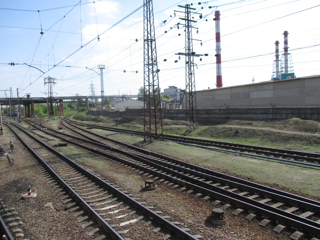 впереди вправо уходят ветки на Крейду (слева), товарный двор (справа). но дальше есть съезд с одного пути на другой