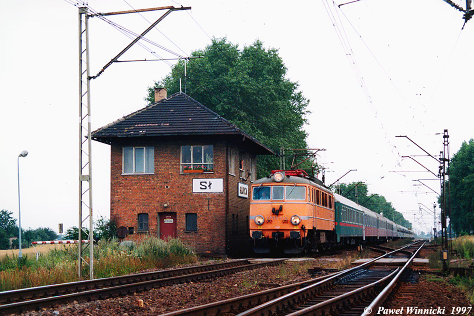 Автор фото: Paweł WinnickiPKP EP08-013 z pociągiem pospiesznym «Ost-West-Express» relacji Bruksela – Moskwa w Słupcy (31.07.1997).
