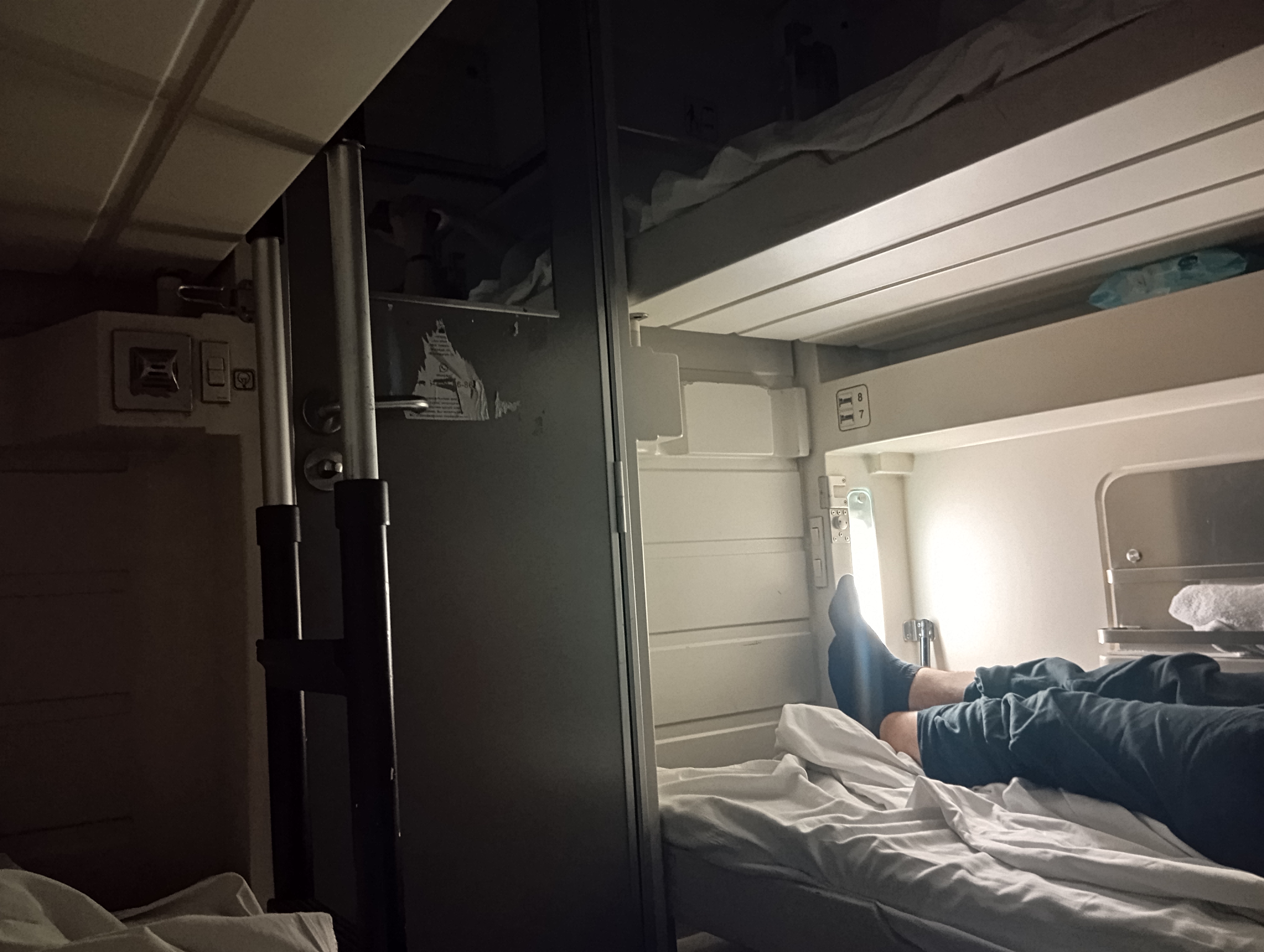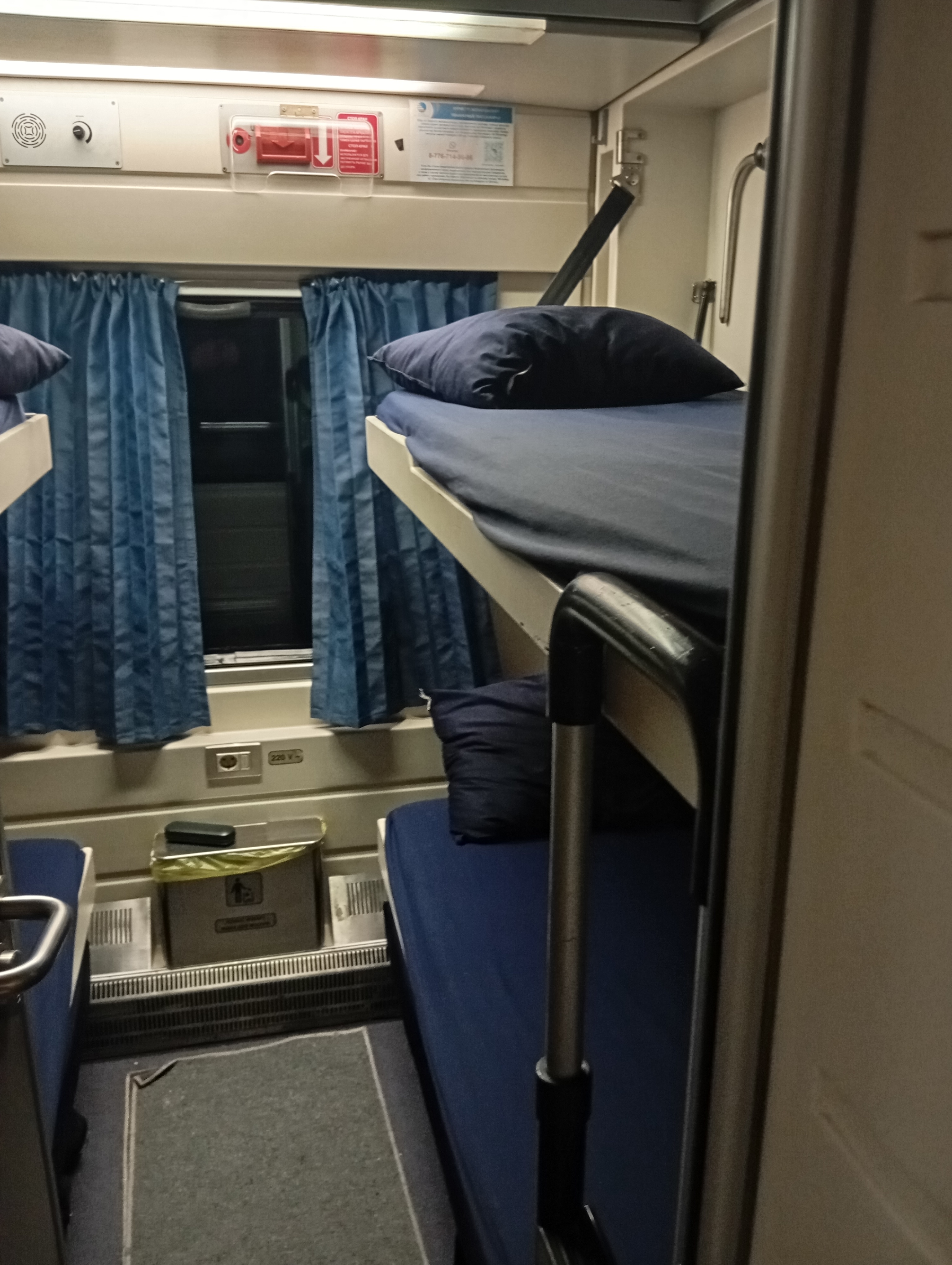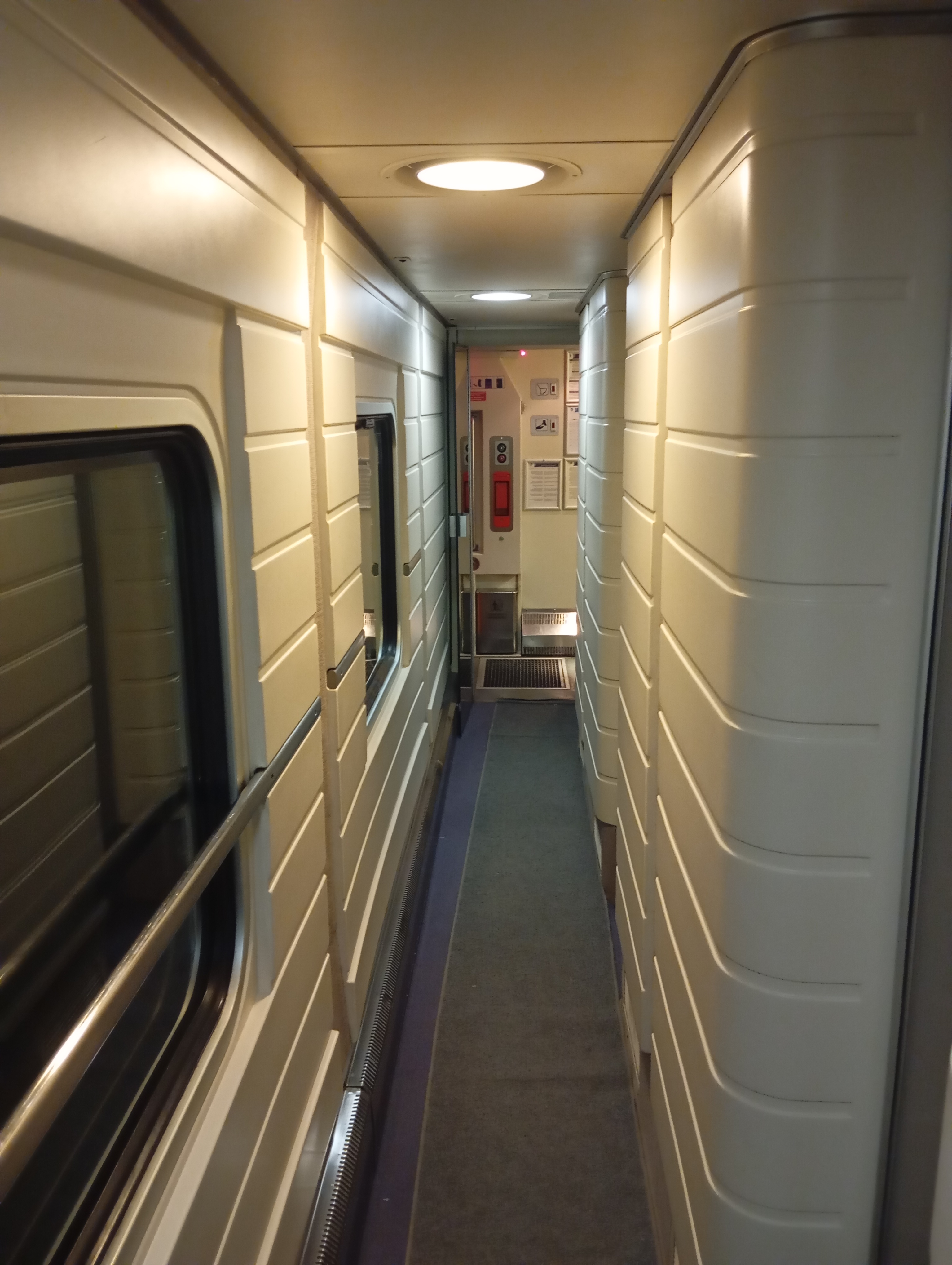 Далее об обогреве. Тёплый воздух идёт из решеток под окном. Но решётки не как в рицах, а гораздо ниже. Индивидуальной регулировки в купе нет. Включается и выключается подача воздуха смачным щелчком (нет, не так, ЩЕЛЧИЩЕМ) реле где-то под потолком. После чего вентилятор(?) начинает гнать воздух на максимально возможной скорости. То есть раздается знатный такой вой! Такое впечатление, что микроконтроллерные мозги всерьёз считают, что медленнее нельзя, иначе пассажиры превратятся в сосульки! Очень скоро, однако, проблема предотвращения замерзания пассажиров решается и реле выключает подачу воздуха. Не успеешь насладиться уменьшением звукового давления со стороны воздоходуйки, как все повторяетя сначала. Почему нельзя дуть с меньшей скоростью, но постоянно? Несмотря на это, микроклимат в купе я бы оценил на отлично! Реально, как рицах с индивидуалкой!