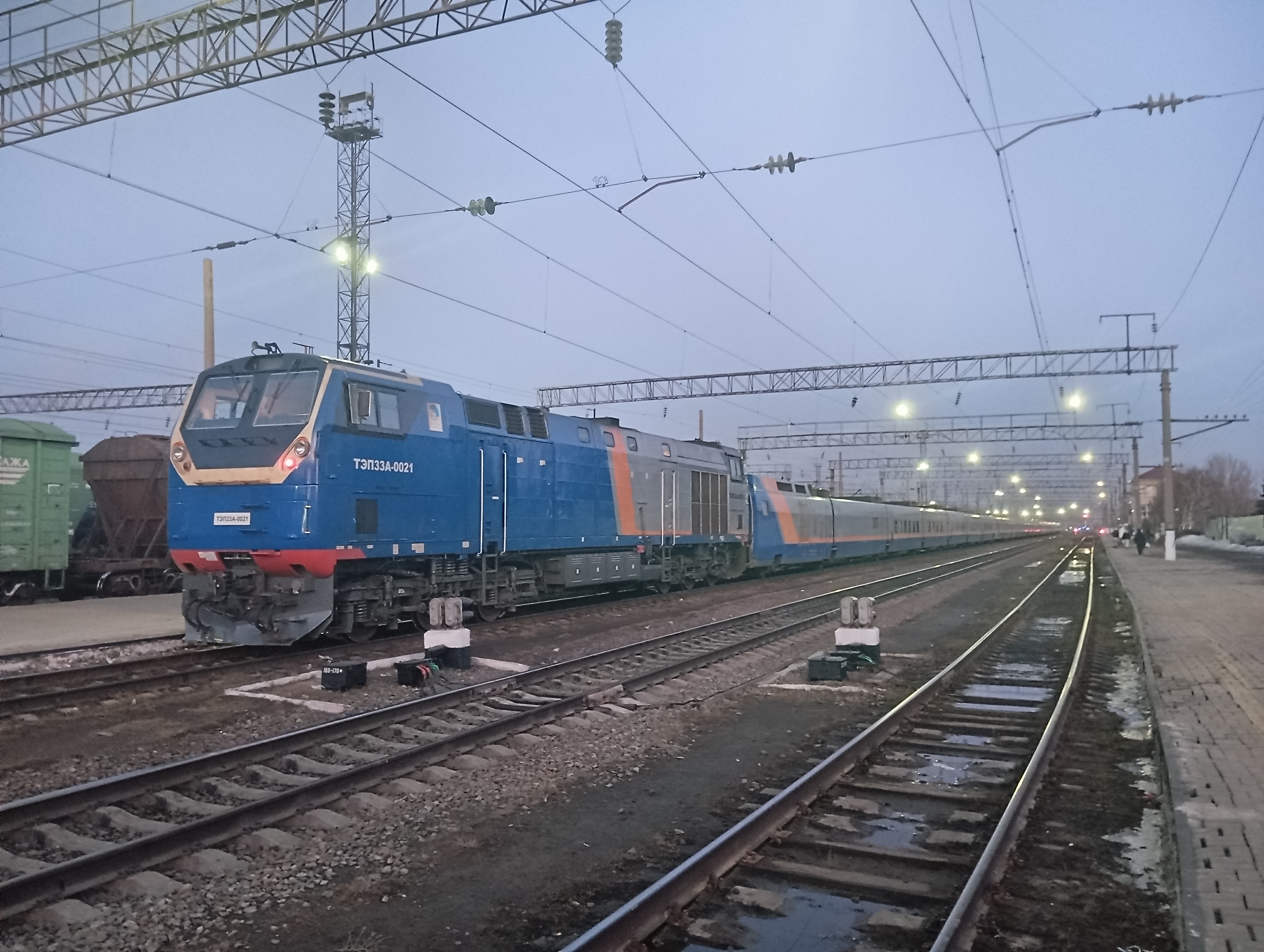 Прокатился на казахской тальге в марте 2017 года от Петропавловска до Алма-Аты. Ездил в вагоне с двухместными купе, но без индивидуальных удобств (без душа и туалета). Билет без проблем покупал на сайте КТЖ по банковской карточке РФ. Билет стоил три с небольшим тысячи рублей. Можно было примерно в семь раз дороже купить тот же самый билет на сайте РЖД. Эта проблема на нашем сайте уже обсуждалась. Билет в вагон с четырёхместными купе стоил две с чем-то тысячи рублей. В таких вагонах последнее купе двухместное, но цена такая же, как в соседних четырёхместных. Билет на бланке не печатал, так как на электронном билете было написано, что его для проезда достаточно. При посадке проводник распечатал на мобильном терминале нечто вроде посадочного талона.