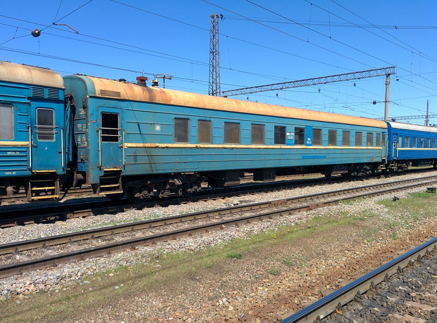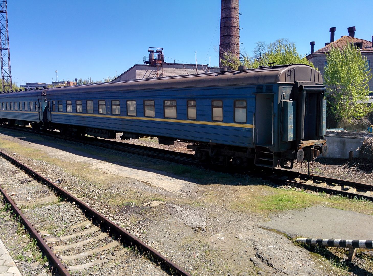 И в конце концов на подъездных путях на Укрпочту стояли 2 плацкарта ТВЗ. Один обычный КР от Жмеринки, а вот второй интересный. Калининец 78го года, КРП Конотопского завода по ремонту дизельпоездов. Привлекли меня его боковины с тремя гофрами под окнами. Скорее всего такие он приобрел после КРП.