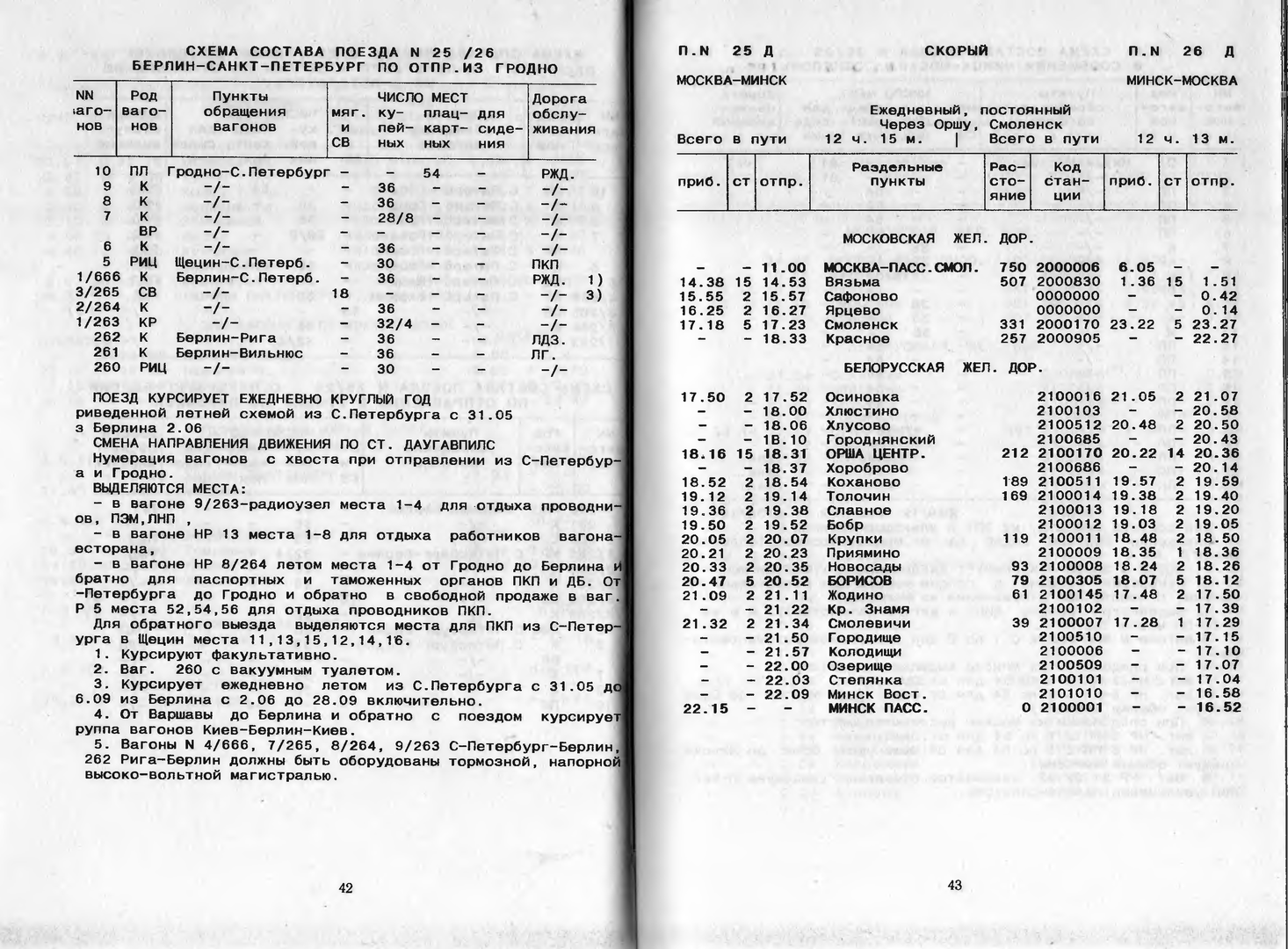 Да, нашел. Это я напутал. 25/26 был всегда, но в 95/96 ходил через день Варшава/Берлин под этим номером. Только в схеме литовских вагонов не нашел, только Рига-Варшава и Рига-Брлин. В белорусской книжке вижу есть.