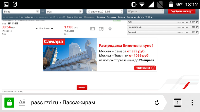 Всё же замечу, что плацкартных вагонов в этот раз аж 8, т.е. свободно 233 из 432, что не так плохо. Полный поезд из Уфы всё равно не наберётся