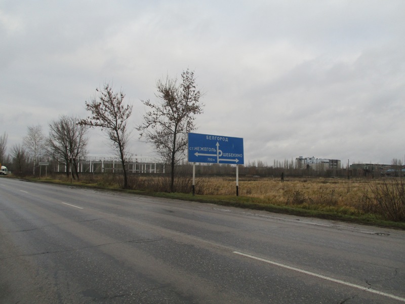 со станции я вышел на объездное шоссе Шебекино (бетонка), после созвона с попутчиком мне нужно было идти в центр города, поэтому я пошел по ж.д пути Нежеголь-Шебекино