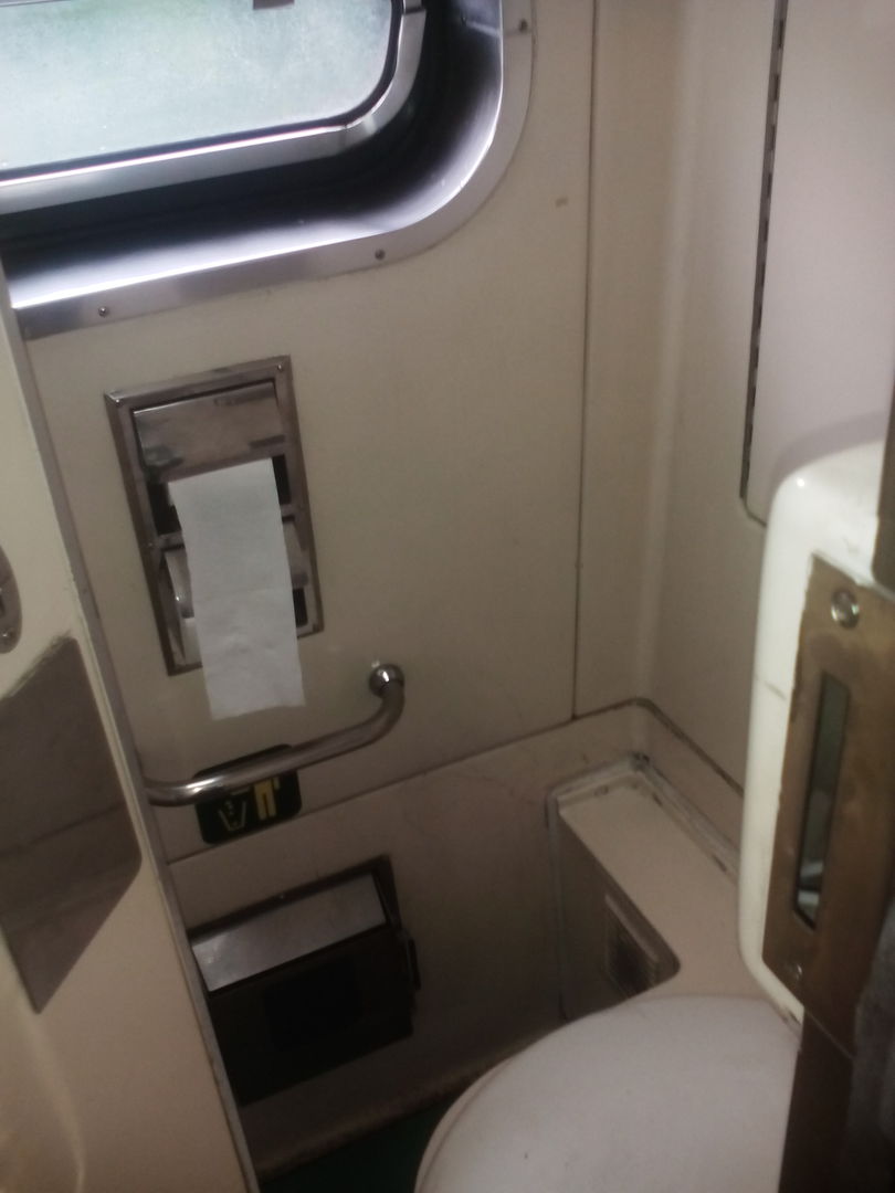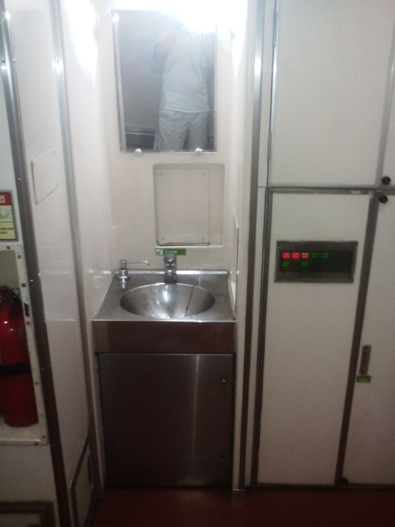 Санузла 2, оба в начале вагона - один мужской, один "общий". "Общий" похож на наши и по размерам и по планировке, унитаз вакуумный, причем засасывает с такой мощностью, что с непривычки даже немного пугаешься. Мужской - узенькая кабинка - меньше 1 кв.м. с писсуаром на стенке. Кроме туалетов есть еще раковина в коридоре, что мне показалось просто мегаудобным и сразу пришла мысль - почему наши до этого до сих пор не додумались до такого. Часто ведь бывает что надо просто помыть руки перед едой или посуду после, а приходится стоять и ждать минут по 20, пока какой-нибудь страждущий с диареей или мадам, наводящая марафет, не освободят туалет. титана конечно же никакого нет, про кулер и вендинговый автомат не помню - то ли были они то-ли нет.