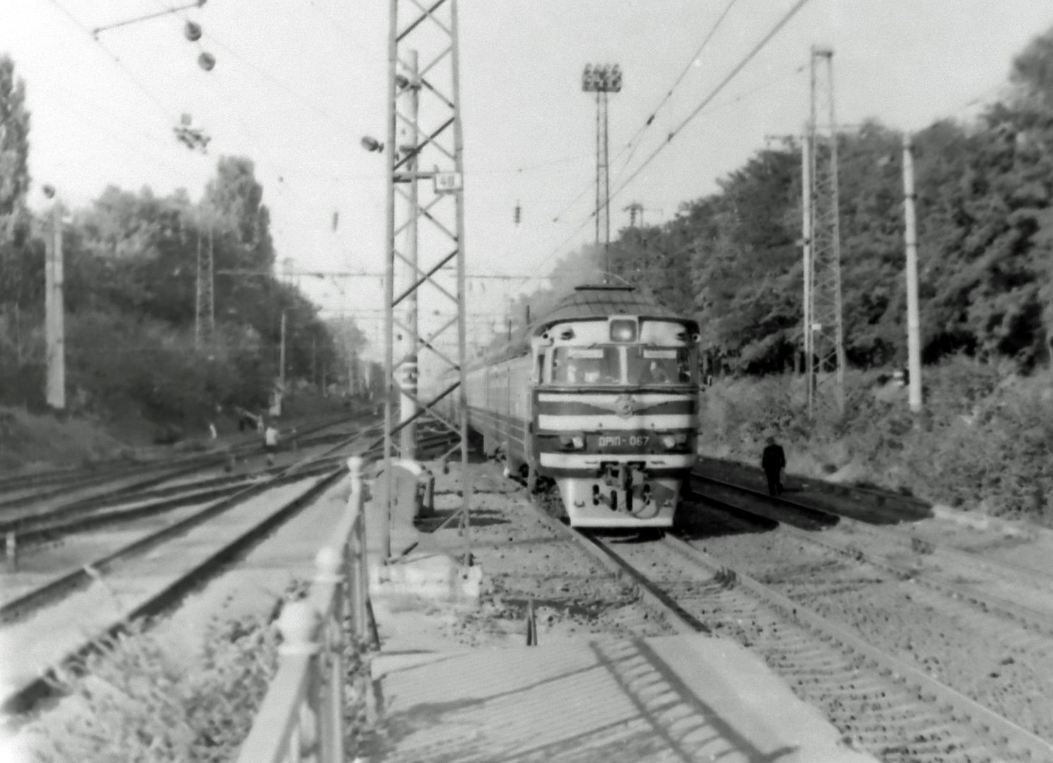 Дизель-поезд ДР1П-067 на станции Киев-Волынский, город Киев, Украинская ССР (1970-е годы):