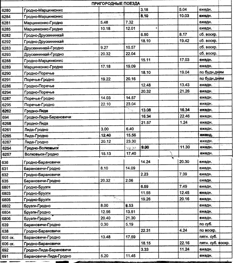 Гродно - Унеча - это хорошоSM@TRON: Расписание по станции Гродно за 1997 год.