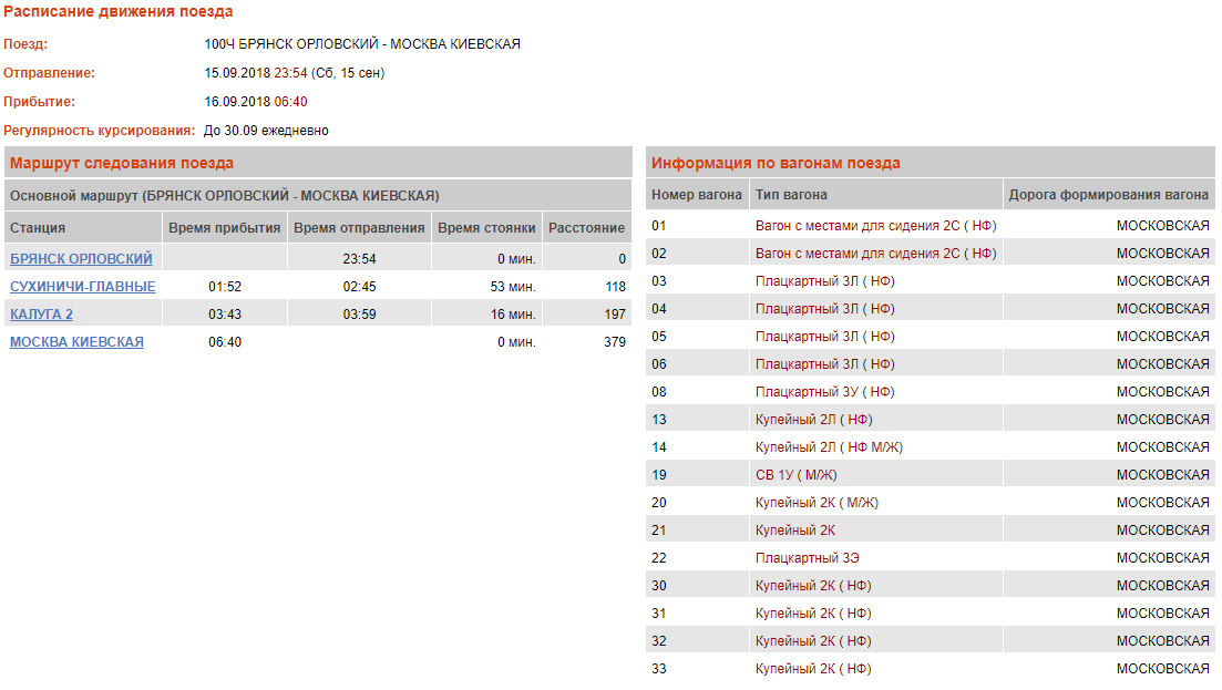 Разве у транспортной полиции не установленные определённые маршруты? Я не встречался с тем, что полиция в один день едет по одному маршруту, а в другой - по более длинному. Впрочем, я могу чего-то не знать. А не видели ли Вы, чтобы на участке Москва - Сухиничи в продажу поступали отдельные места в 8 купе вагона 13К? Это означало бы, что места с 29 по 32 просто на 2-х часовой брони?qoymeck:Не будет там о Сухиничах. Они, видимо, могут ехать и полный маршрут, поэтому эти места придерживают до 2 часов до отправления и иногда в продажу не поступают. Аналогично и с 85-м: 029—032 в 13К зарезервированы на полный маршрут, но частенько от Унечи за 2 часа до прохождения их выбрасывают в продажу до Климова.Шиленков Алексей: Неплохо бы служебку посмотреть, там может быть указание на назначение этих мест на участке Сухиничи - Брянск.
