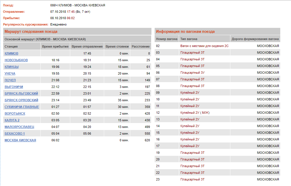 Итого, от Брянска до Москвы в 086 едут в купе 135 человек, в плацкарте 260 человек, в сидячем 26 человек.