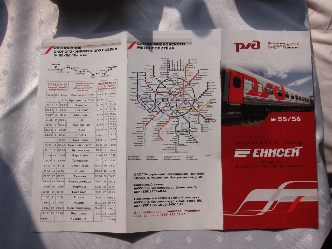 Данная тема предназначена для отзывов, фотографий, схем составов и расписаний поезда. Убедительная просьба вести обсуждение поезда, задавать интересующие вопросы в специальной теме форума "Обсуждение и вопросы по поездам": Обсуждение поезда 056Ы/055Ы Москва - Красноярск "Енисей"