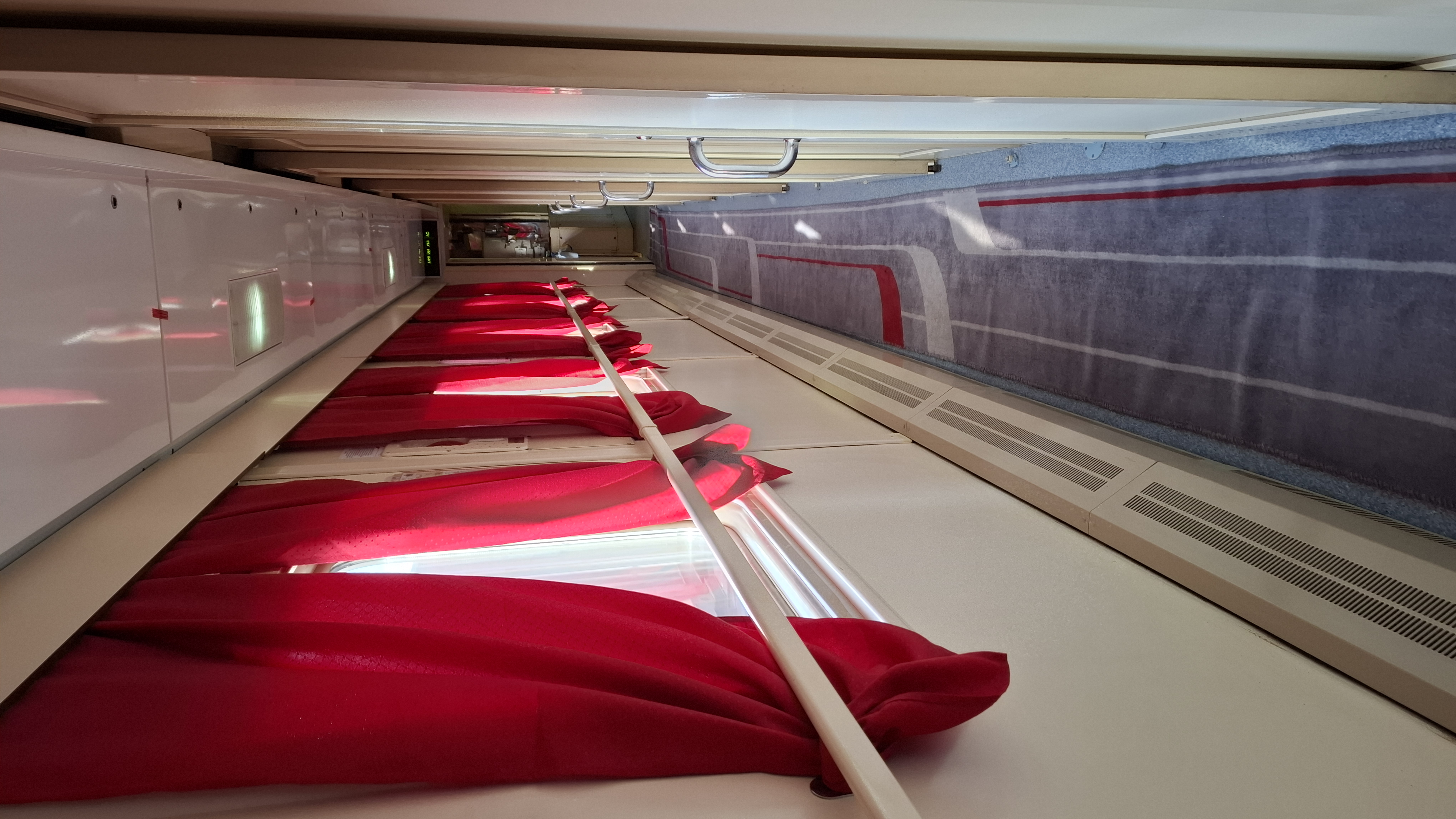 Состав сам по себе очень приличный, все вагоны новые, с УКВ/ЭЧТК, в хорошем состоянии. Вагон 01П (051 26149) - совершенно новый "поздний" 61-4447 не старше 2-3 лет, с красными кожзамовыми полками на упорах и электронными табло. Ехать в таком вагоне весьма комфортно - очень тихо, не слышно грохота тележек и прочих технических звуков, мягкий ход, удобные полки, хорошо работает вентиляция. Признаю, что ТВЗ научилось делать очень хорошие вагоны (естественно, оцениваю как пассажир, не как эксплуатационщик).