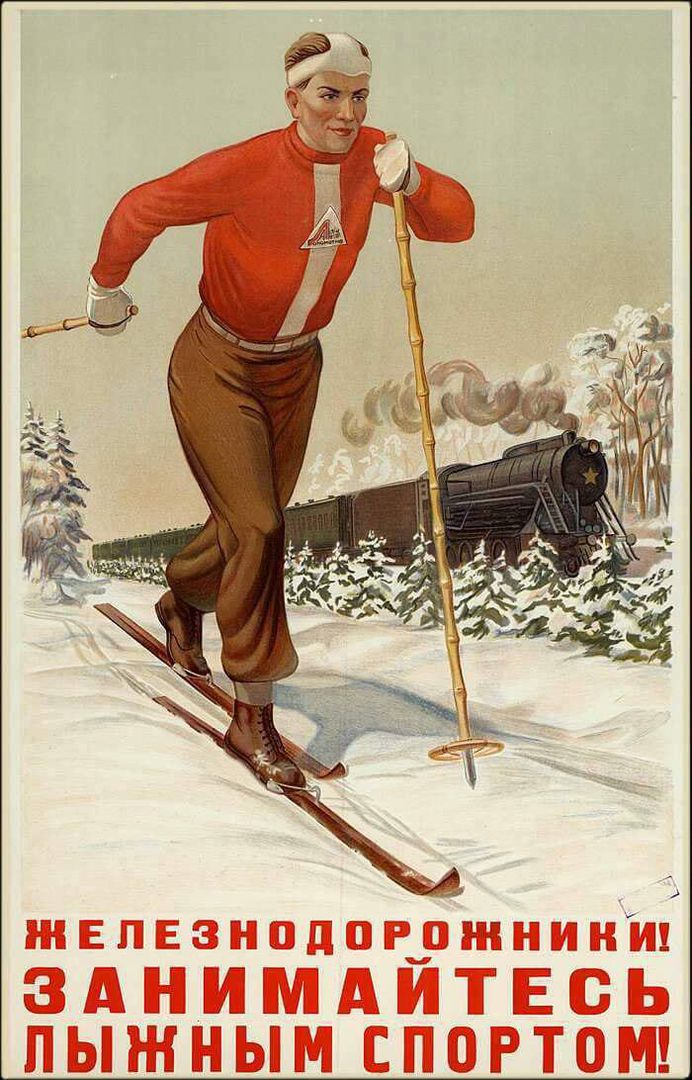 Хороший плакат!!! Простые беговые лыжи и здоровья у-гу-гу. К сожаленью ныне вся спорт.реклама настроена не только на здоровье, но и на денежную выгоду… Горные лыжи – здорово, купи все обмундирование и что еще требуется и отдыхай. Здорово. Но что в результате – не всегда можно похвалиться. На значок ГТО ты потянешь???