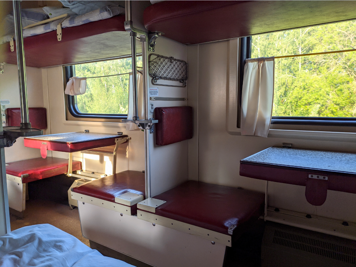 Самое обидное, что поезд едет довольно длинным маршрутом на юг, но в купе 0 розеток. В коридоре вся разболтанная имелась:)