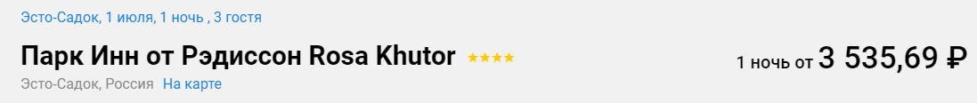 Колхозник: Сейчас навскидку набрал на букинге номер на 2 взрослых с 1 ребенком с 1 на 2 июля (Роза Хутор). Отели смотрел от 3 звезд. В принципе можно найти и за 3000 руб в сутки. Правда подобных предложений мало. Но при желании можно найти. Основная масса все же существенно дороже.