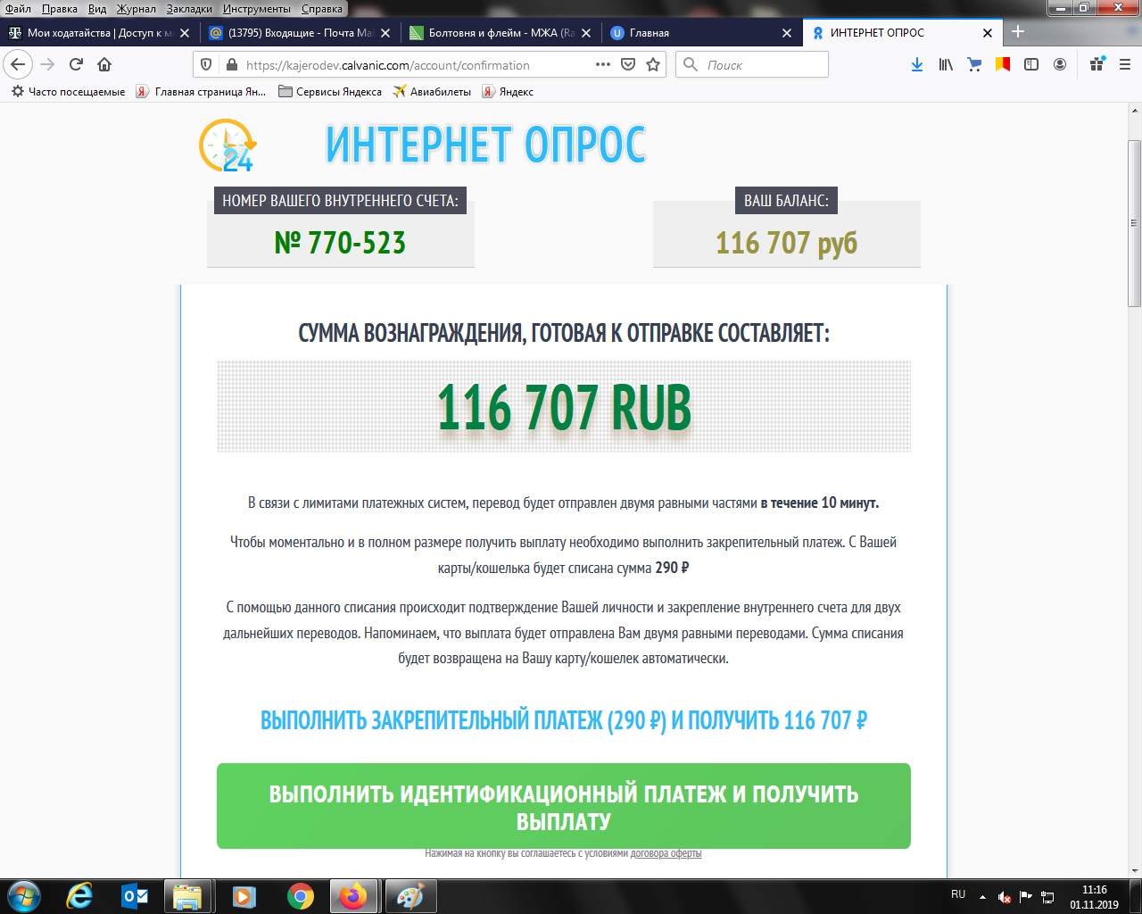 А теперь реклама мошенников появилась - платишь 300 рублей, получаешь более 100 тыс.. Кликнул по баннеру, перешел на страничку и отпринтскринил все этапы перехода: