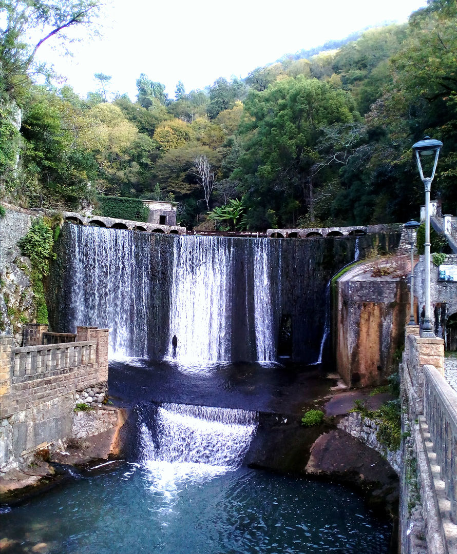 Мимо запруды, искусственного водопада, исторического здания электростанции