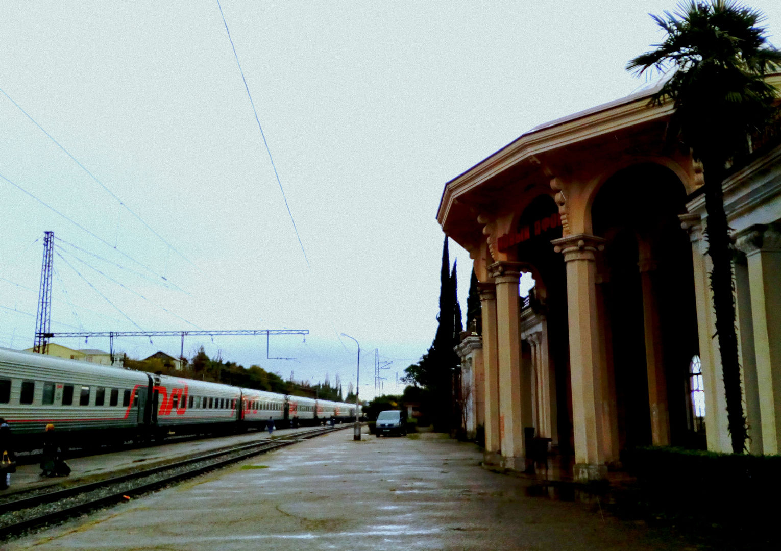 Железнодорожный вокзал располагается в периферийной, не особо привлекательной для туристов части Нового Афона