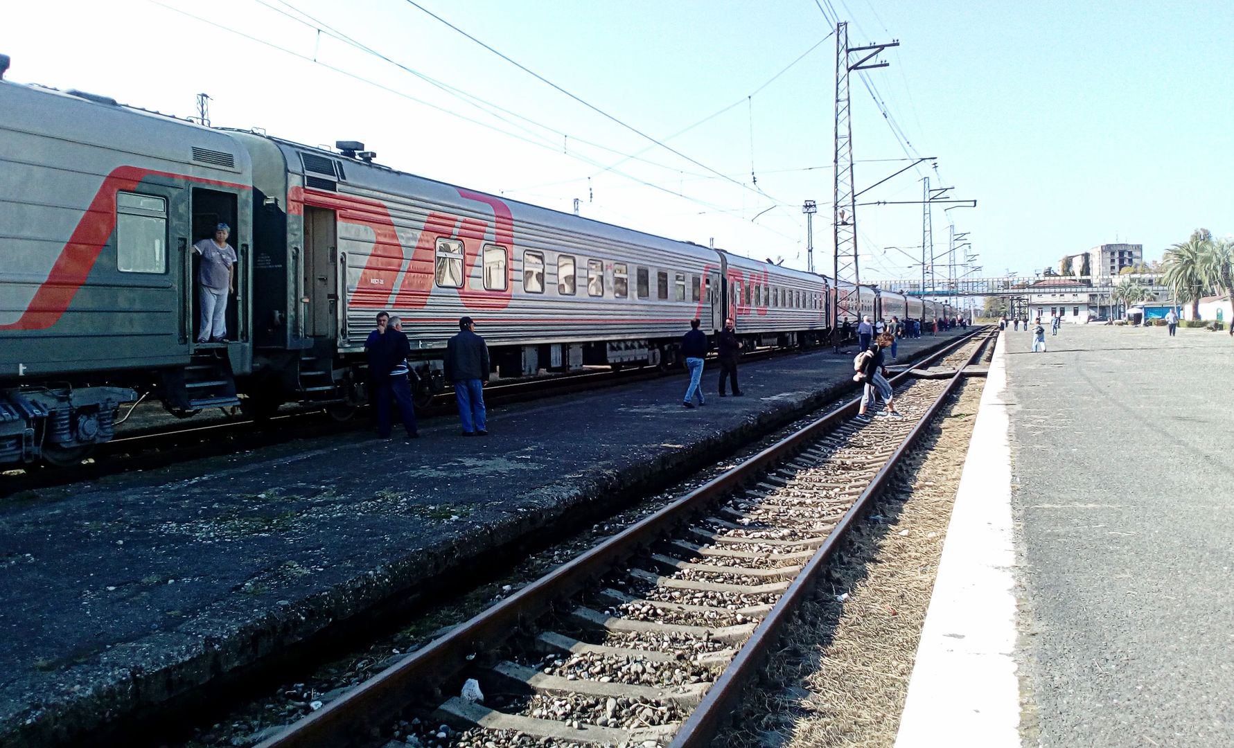 Прибытие международного поезда сообщением Москва - Сухум на вокзал столицы Абхазии