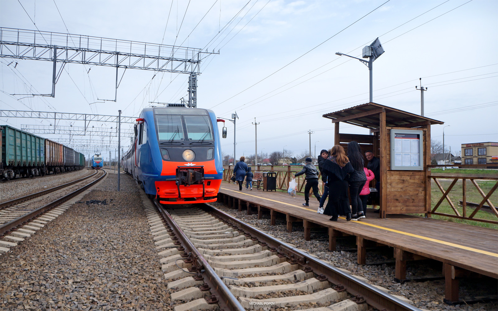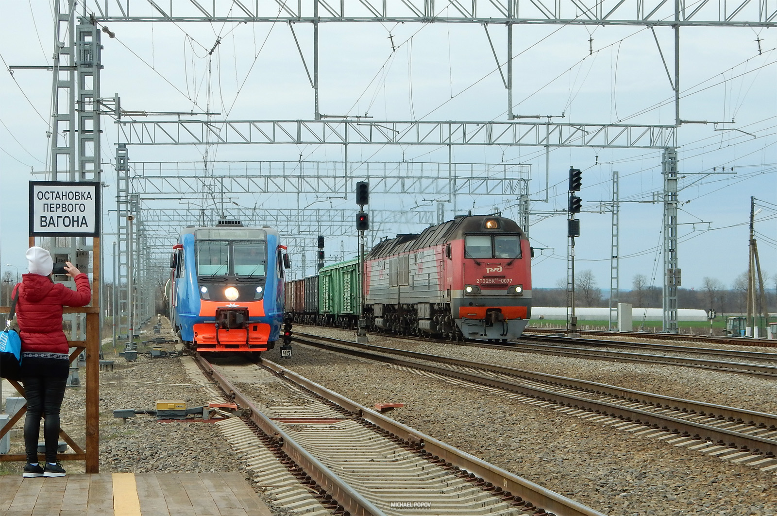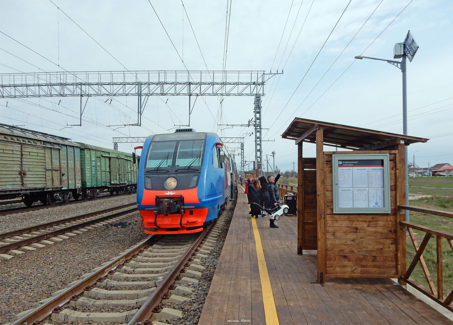 Пригородный поезд Анапа-Керчь на станции Юровский, 15 марта 2020 г.