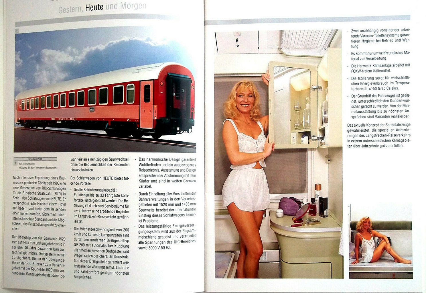 Ну и плюс одно фото прототипа с подвагонной юбкой, который в 96 году был продан Укрзализнице. Здесь он ещё в заводских цветах, которые, видимо, придумали наобум, хотя на время испытаний с пассажирами в составе овернайта Берлин-Мюнхен (или Дрезден-Мюнхен, запамятовал уже) он был формально занесён в реестр DR и обслуживался Митропой.