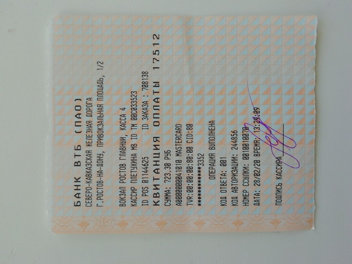 Но картонка со штрихкодом и выдавыленным логотипом РЖД. Да,еще странно что эти билетные принтеры Custom ультрасовременные супердорогие печатают банковские слипы только на бланках РЖД.