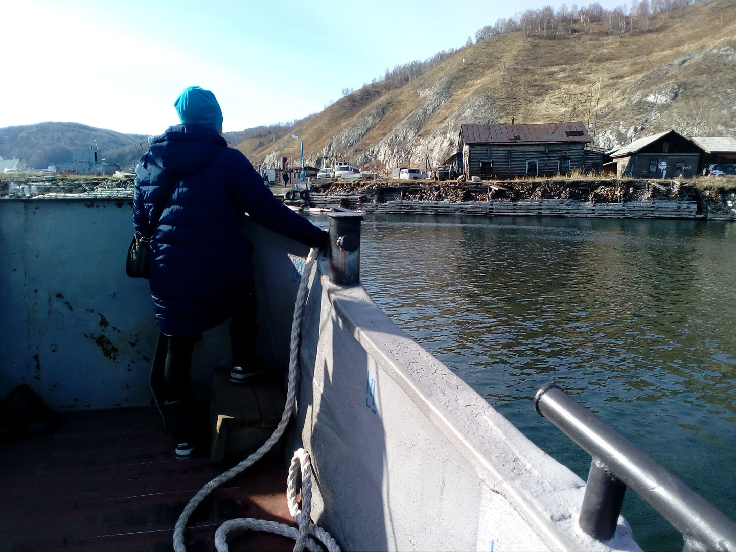 Вот впереди, наконец, показываются очертания поселка Порт Байкал и вахтенный готовится к швартовке