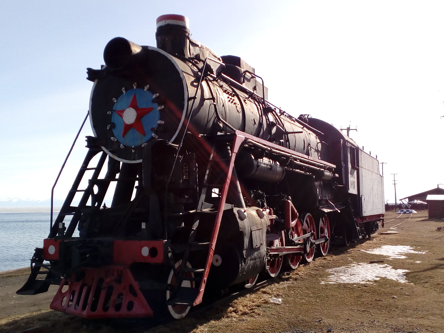 Красавец-паровоз на фоне бескрайних просторов Байкала