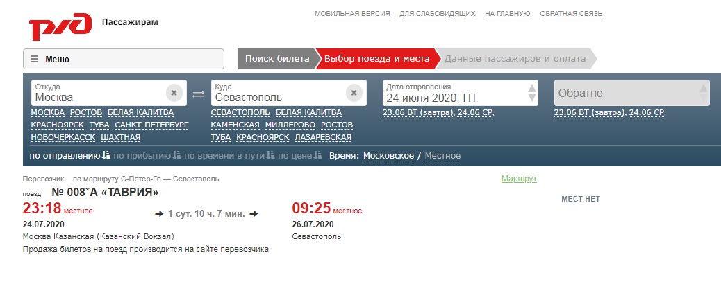 Это какой-то глюк с автобусом Симферополь-Севастополь. Другое дело, что из Москвы мест нет. Можно купить билет, например, из Твери.
