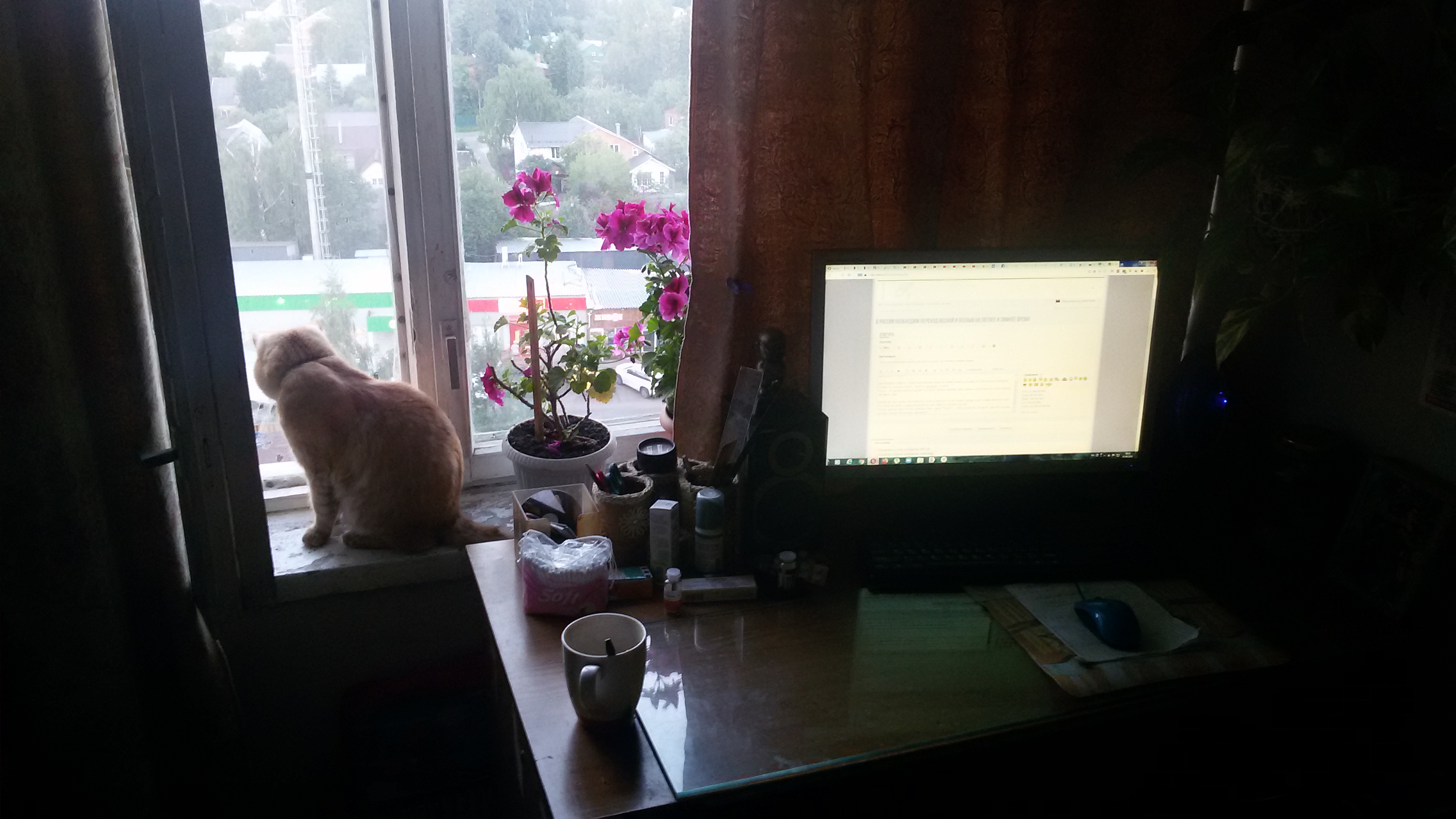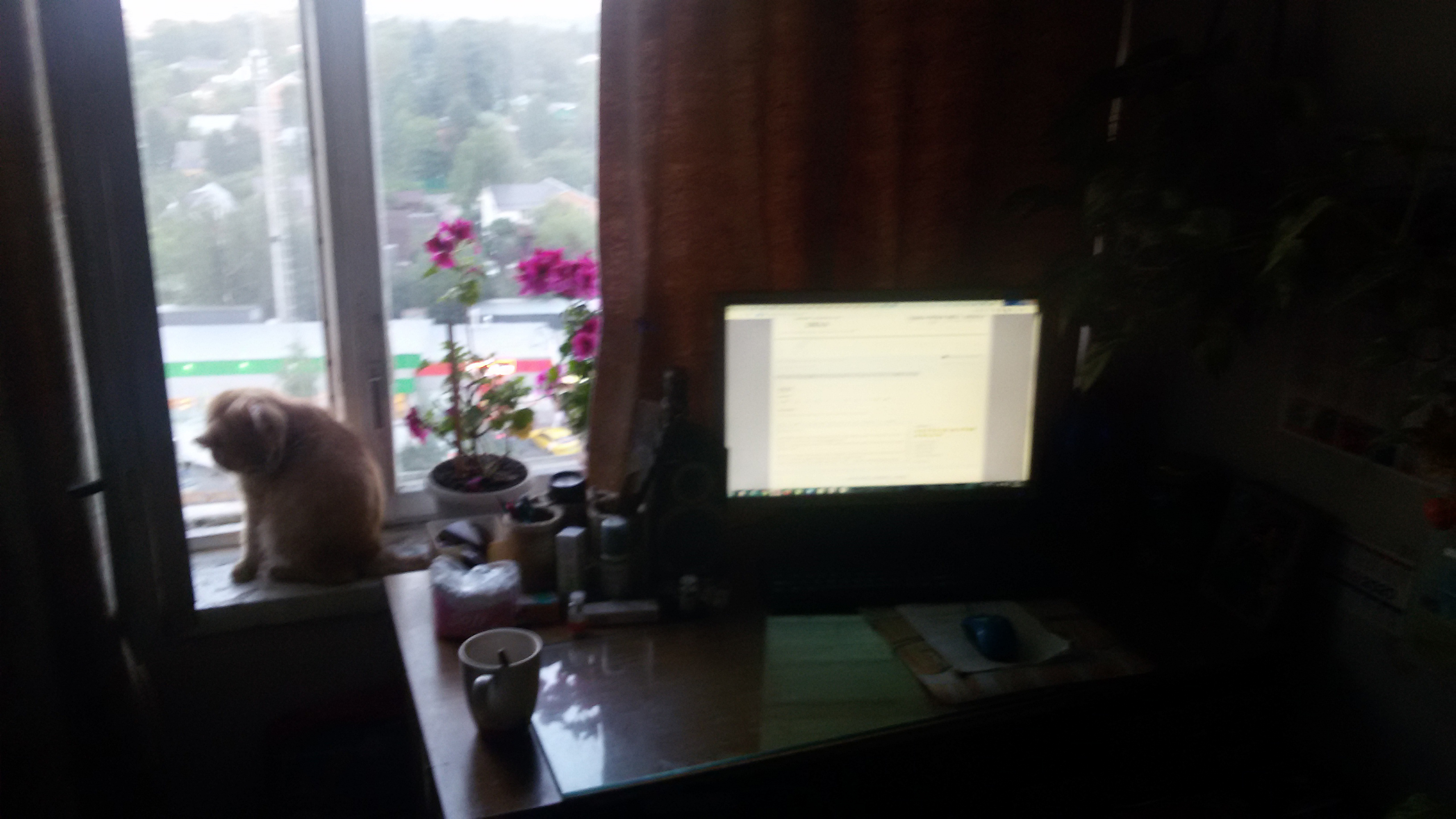 Почему мне не надо :=-O: ?! Стол с компом стоят у окна :*TIRED*: ... Окна на восток, т.е закат с другой стороны дома, да ещё и штора наполовину завешена и вполне светло. Ещё даже и не сумерки.