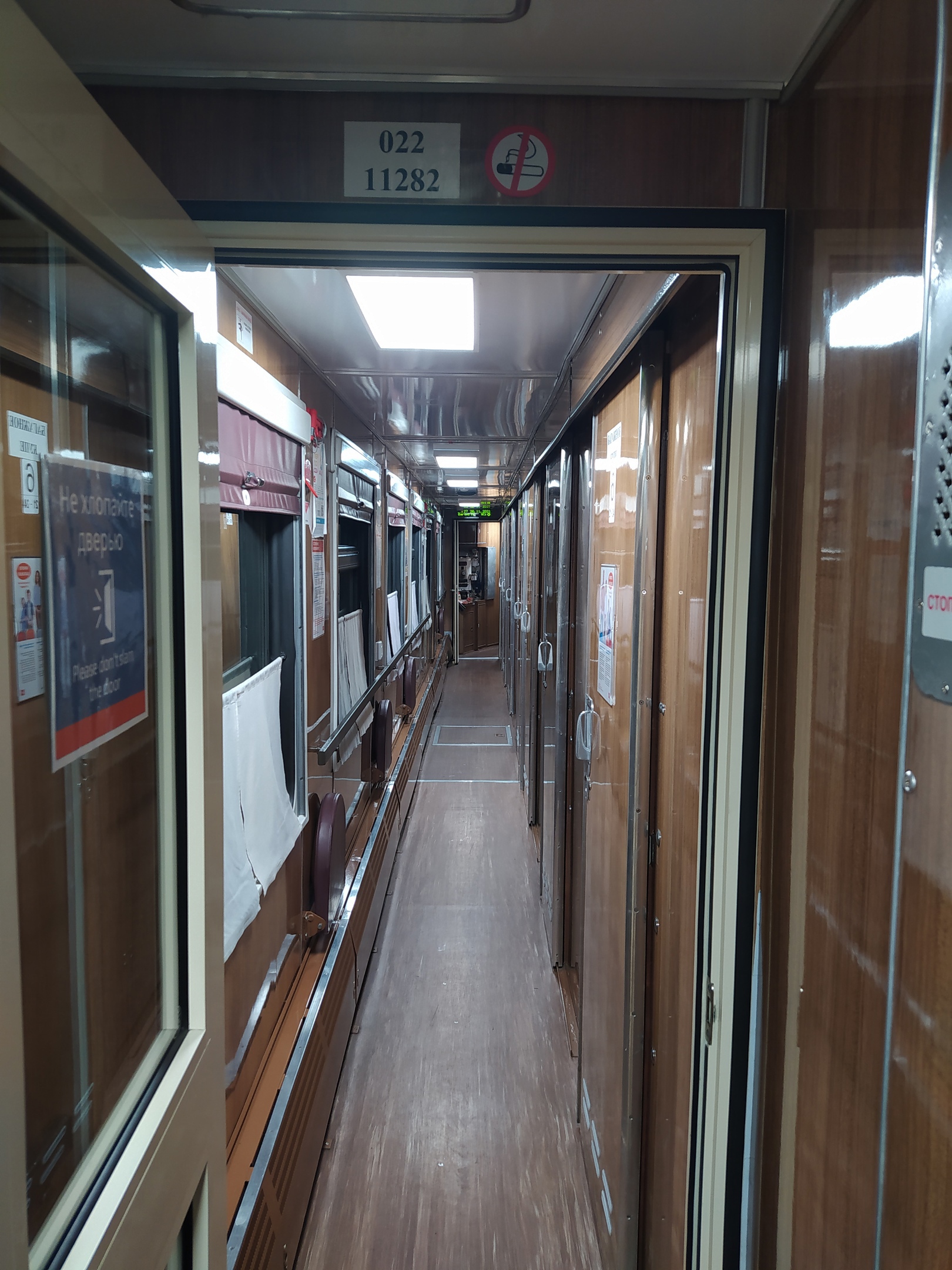 3) Внутри ничего так, норм. ТВЗ наверно, не разбираюсь в моделях вагонов (с коричнево-рыжей обивкой полок, туалеты по разным концам вагона). Всё исправно и на месте. Как потом оказалось, кондей молотит не по детски, и никак его проводники не хотели регулировать. Затыкали его тряпками и пакетами, но не особо помогло. Как итог - простуда после поездки. :]:-O: