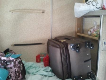 всё купе увешано какими-то полочками, а чемодан воткнуть некуда