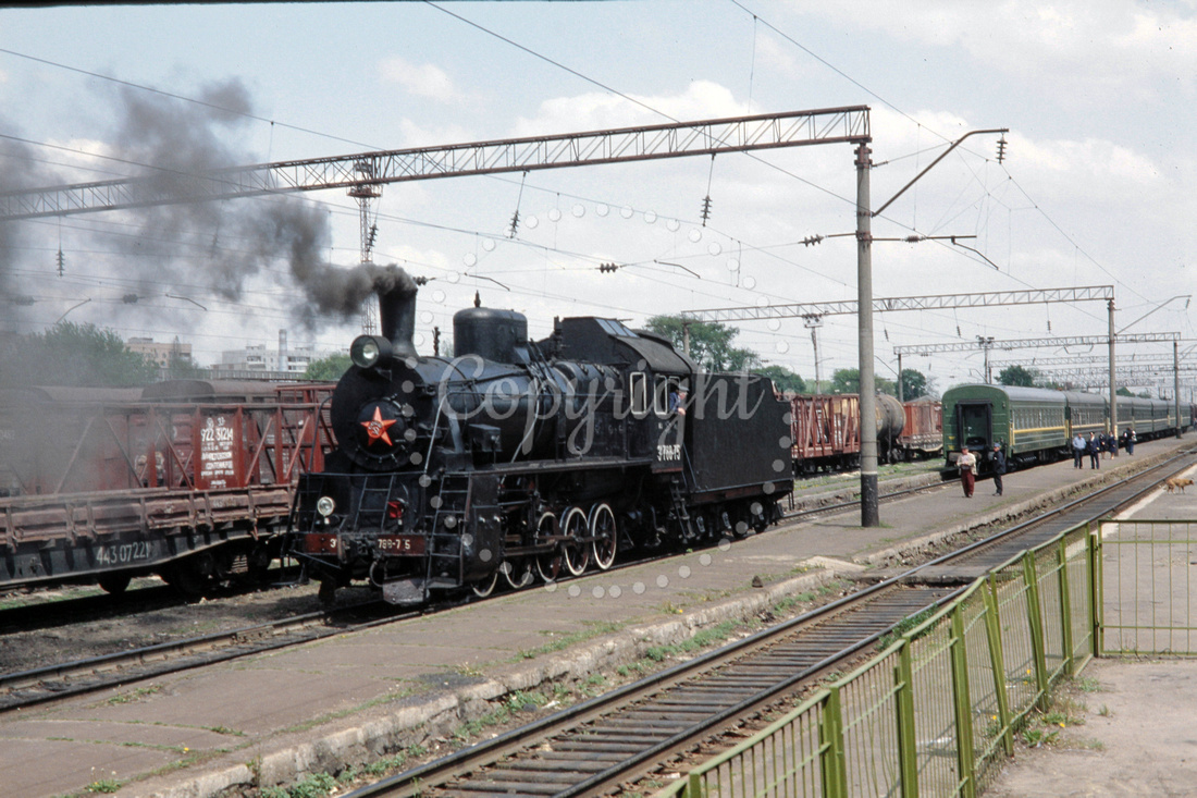 JMT8311 - Russian SZD сlass FDp20-578 at the Kiev Passazhirskyi station (24.05.1992) - Renumbered from cl. JS21. Plinthed - Builder Lugansk - John Tolson.
