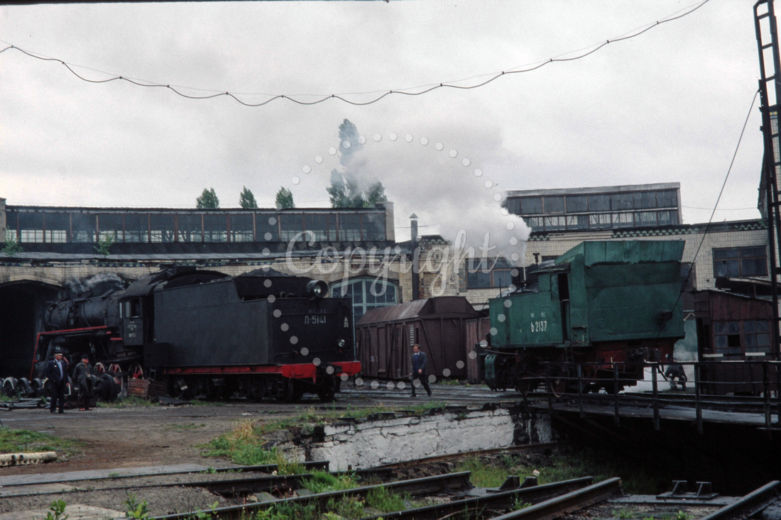 JMT8361 - Russian SZD class L-5141 at the Korosten depot (26.05.1992) - With Ь-2137 on shed - John Tolson.