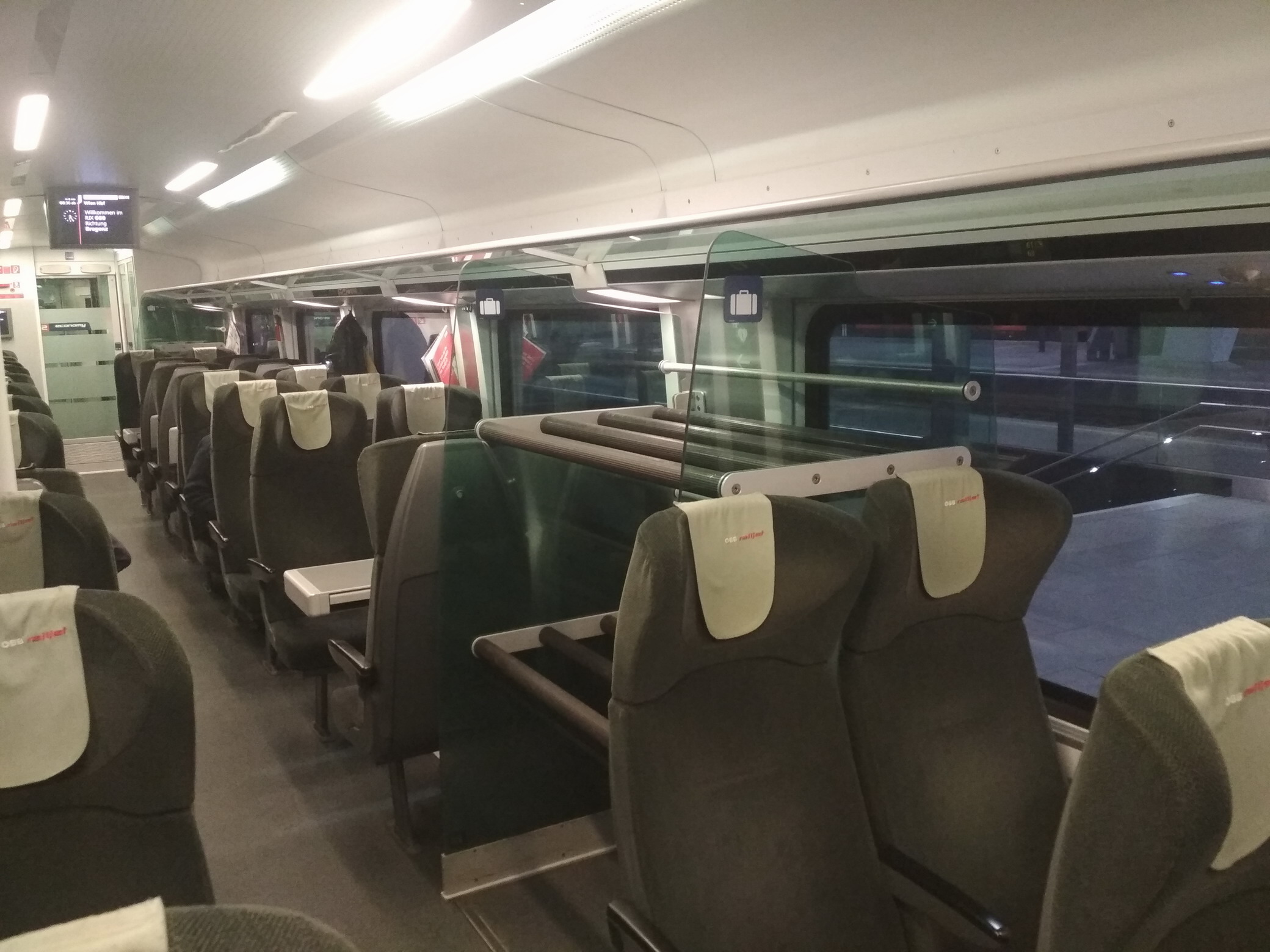 OEBB Railjet (дальний поезд в Австрии), табличка, на которой указывается резервация, расположена над каждым местом. Так что догадываться о свободности места не нужно: