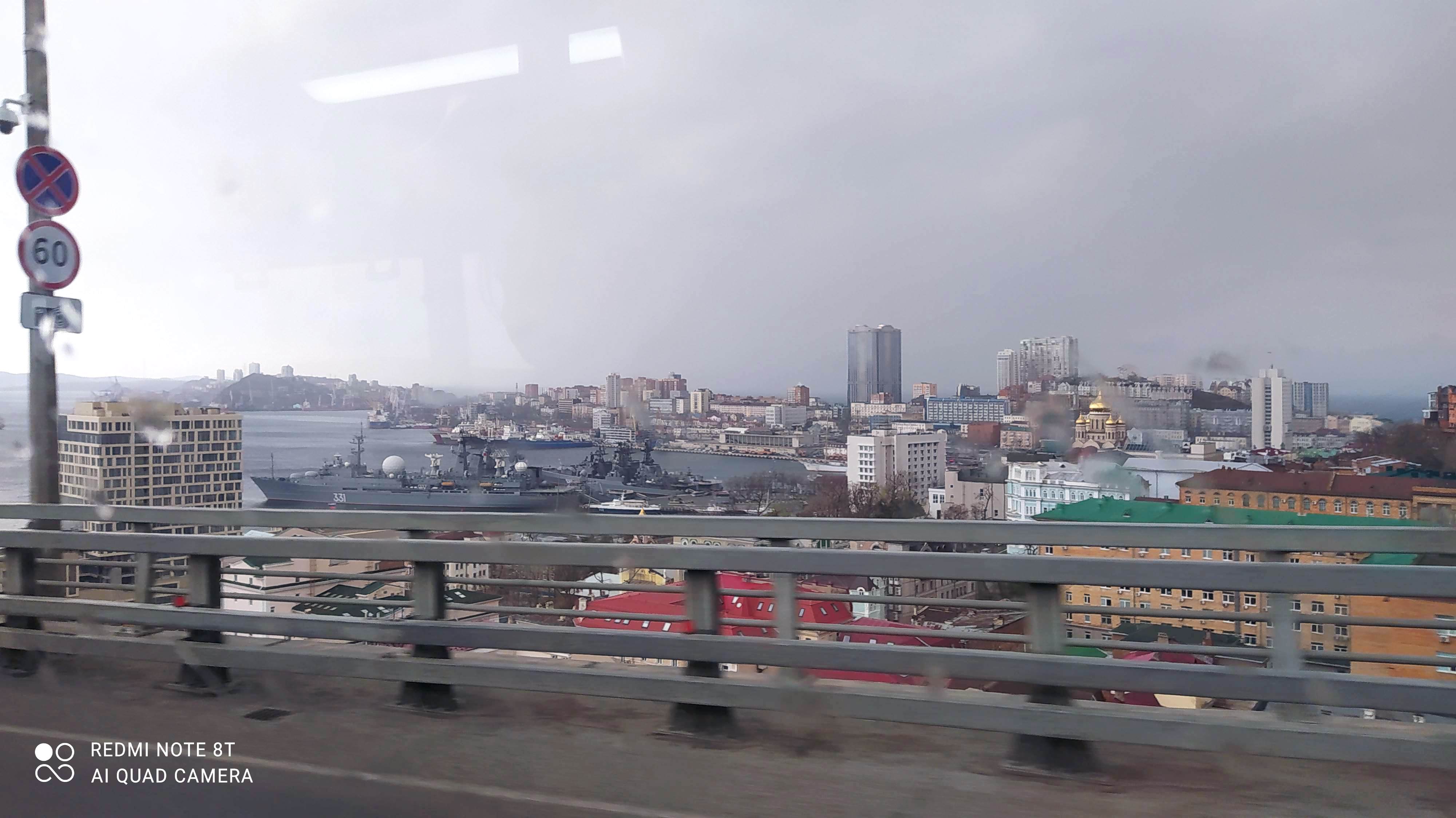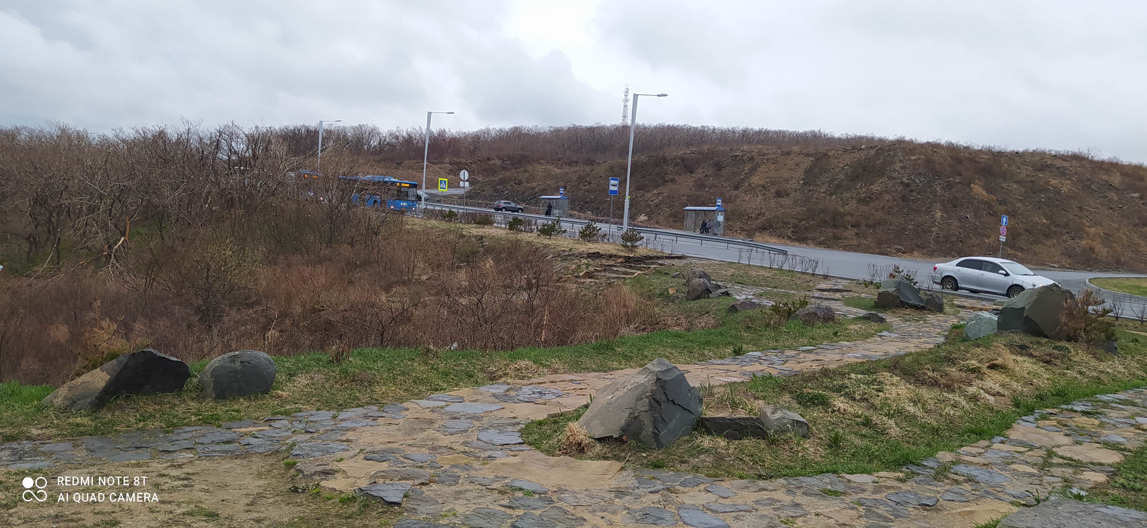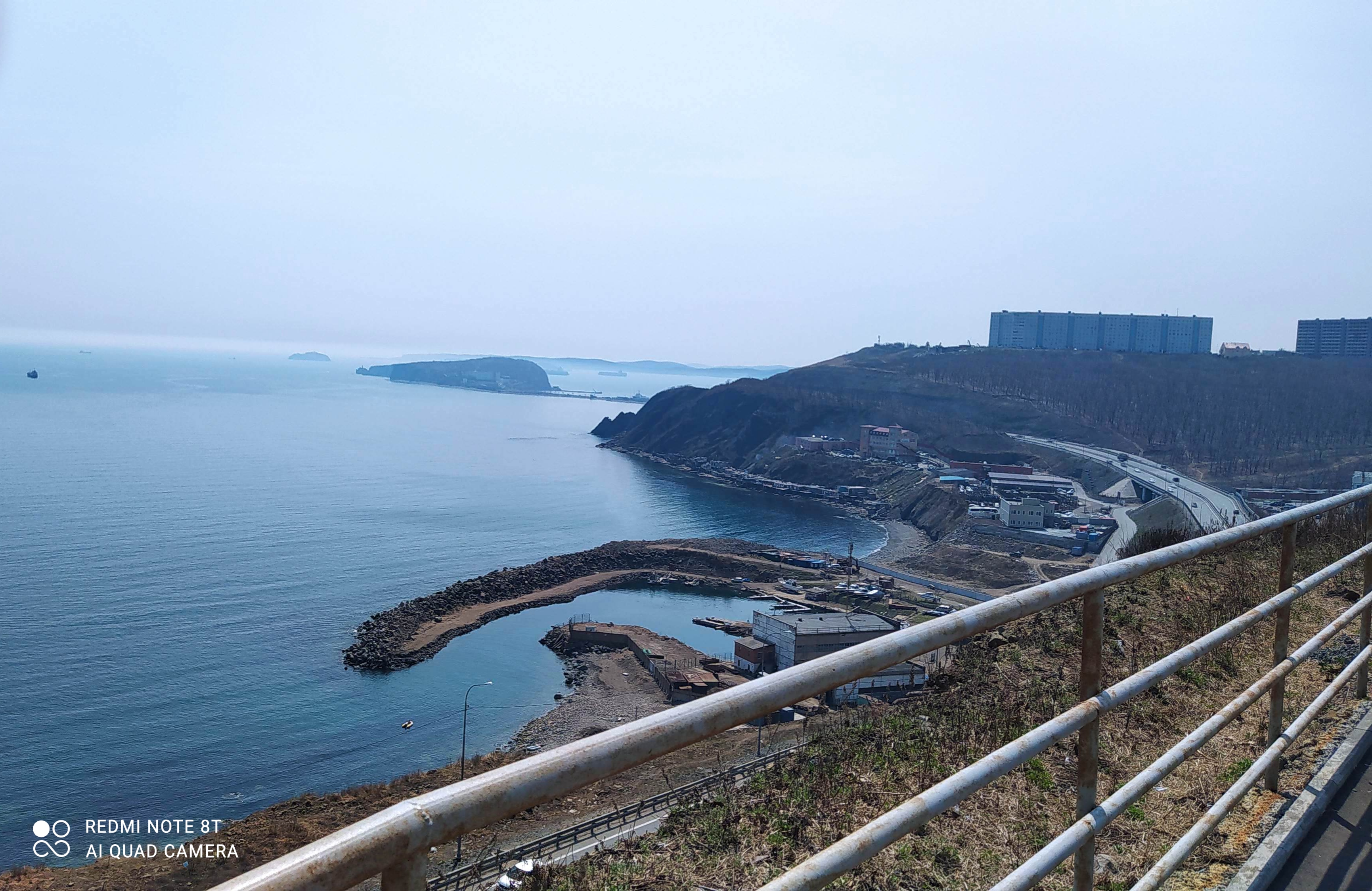 Приехал с рынка, занëс всë в номер, и поехал на остров. Прогулялся пешком до ТЦ "Изумруд" (минут 20 ходьбы) там конечная 15-го автобуса, который на остров едет до Океанариума. Мимо ЖД вокзала по идее ходит 63-й маршрут "Маяк - Океанариум", но ходит хрен пойми когда и по какому расписанию. Автобус-призрак короче... Решил обратно если что, на нëм доехать до Маяка. А 15-й маршрут ходит часто - минут 10-15 интервал. Минут за 50 где-то ЛиАЗ-5292 доехал до Океанариума, пробок не было. По пути поднялся ветер и дождь начался. Вышел там, постоял на обрыве, пару фоток сделал, покурил... И вообще замëрз! Ветер там сильный и холодный, да дождь ещё... Глянул расписание 63-го, указан в 17:50 от Океанариума. Время было 17:30, думаю: подожду, доеду до Маяка. Подождал, замëрз ещё больше, время 17:55, ничего похожего на 63 нет. Стоят несколько 15-х и 77-х. Решил поехать 77-м до конечной "Автовокзал", а оттуда 81-м "Автовокзал - Маяк", тем более в северной части Владика ещё не был. На таком же ЛиАЗе-5292 доехал до автовокзала тоже примерно за 45-50 минут. Согрелся, пока ехал. И пока ехал, кончился дождь и ветер, небо поголубело и появилось солнце. Но тем не менее прохладно всë равно.