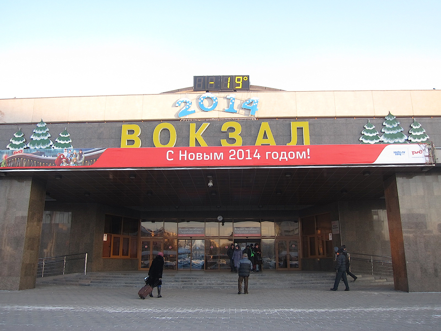 Отправление поезда по графику было запланировано на 15:35 (мск), поэтому с учётом Челябинских +2 часов железнодорожный вокзал встретил лучами заходящего солнышка и бодренькими -19 по Цельсию: